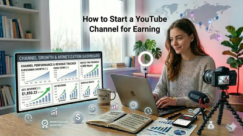 If you are searching for how to start YouTube channel for earning, you are not alone. Millions of people want to learn how to start YouTube channel for earning, but only a small percentage understand the strategy required for long-term success. Starting a channel is easy, but understanding how to start YouTube channel for earning in a structured and profitable way requires planning, niche selection, content optimization, and consistency. In this complete guide, you will learn exactly how to start YouTube channel for earning, how monetization works, and how to build a sustainable income stream from your content.
