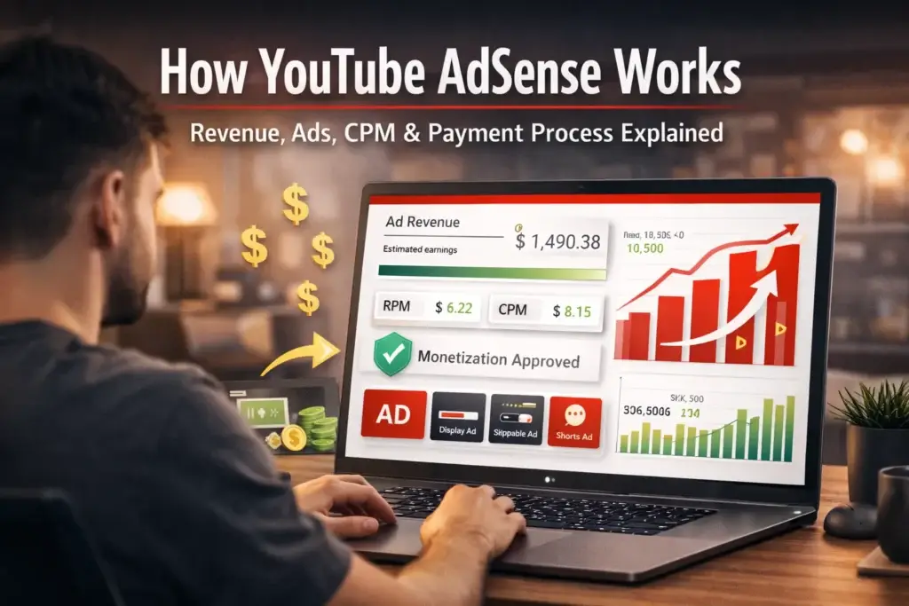If you are serious about earning on YouTube, you must clearly understand how youtube adsense works. Many creators reach monetization but still do not fully understand how youtube adsense works, which leads to confusion about RPM, CPM, payment delays, and revenue fluctuations. In reality, how youtube adsense works is based on a structured advertising system where advertisers bid to show ads on monetized videos. When you understand how youtube adsense works, you can optimize your content, increase revenue, and build a predictable income stream. This complete guide explains in detail how youtube adsense works, how revenue is calculated, and how creators in the USA can maximize earnings legally.
