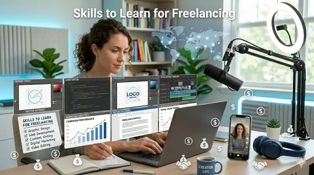 If you want to build a successful online career, the first question you should ask is: what are the best skills to learn for freelancing? Freelancing is not about random online tasks—it is about offering valuable services that businesses are willing to pay for. Choosing the right skills to learn for freelancing can determine whether you struggle for months or start earning consistently. In this complete guide, we will explore the most in-demand skills to learn for freelancing, how to choose the right skill, how much you can earn, and how to build long-term success. Understanding the right skills to learn for freelancing is the foundation of financial freedom in the digital economy.