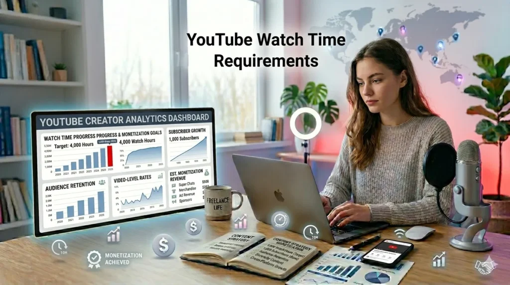 If you want to monetize your YouTube channel, understanding youtube watch time requirements is absolutely essential. Many creators reach 1,000 subscribers but still fail to meet youtube watch time requirements, which delays monetization approval. The reality is that youtube watch time requirements are one of the most important conditions of the YouTube Partner Program (YPP). Without meeting youtube watch time requirements, you cannot earn ad revenue, activate memberships, or access monetization features. This complete guide explains everything about youtube watch time requirements, how watch hours are calculated, how to increase them, and how to qualify faster in 2026.